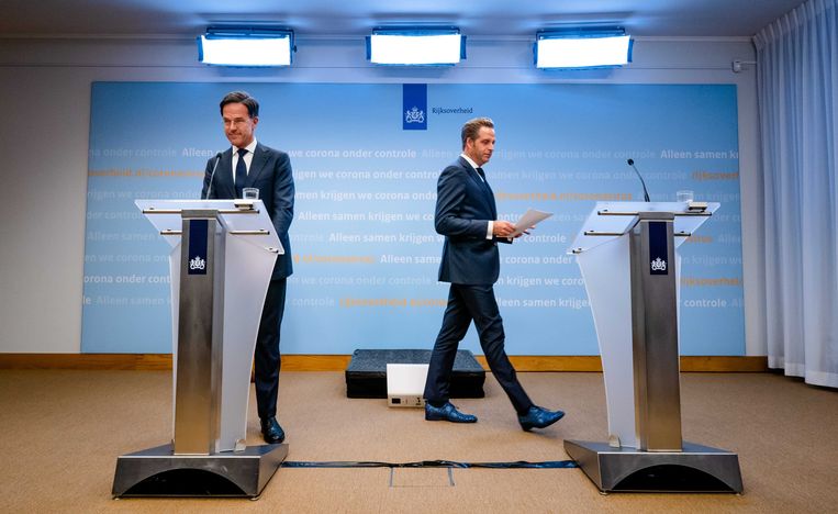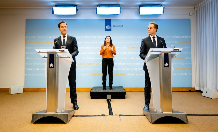 Premier rutte en minister de jonge lichten de nieuwe maatregelen toe.